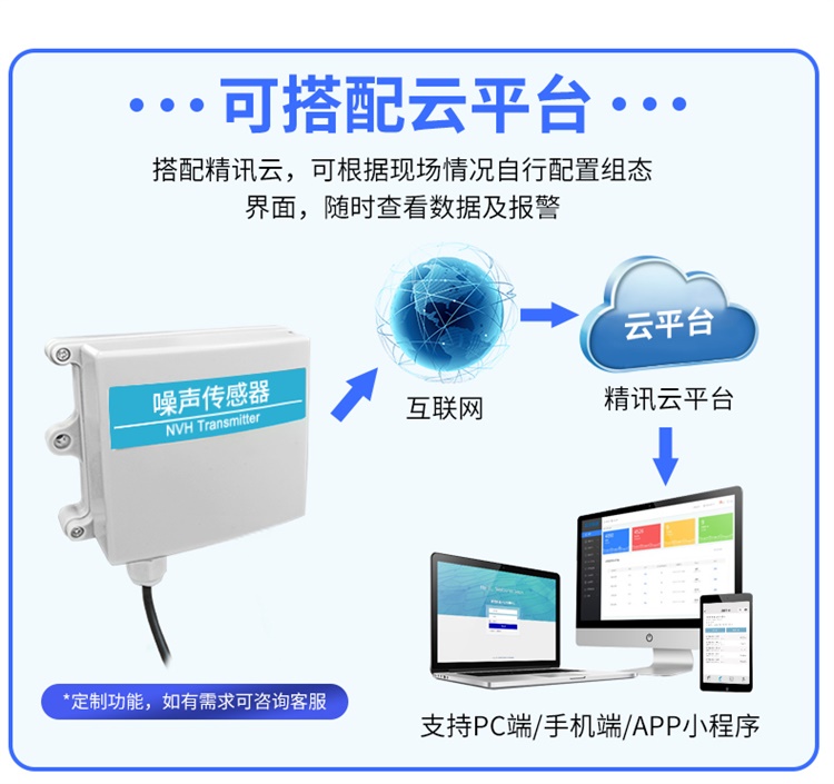 精訊暢通自主研發(fā)的RS485噪聲傳感器可以廣泛應(yīng)用于倉(cāng)庫(kù)機(jī)房、生產(chǎn)車間、檔案室、圖書館、學(xué)校、商城、智能家居、樓宇控制等領(lǐng)域。具有多種傳輸信號(hào),可以更好的滿足不同客戶的具體需求。具低功耗、穩(wěn)定性強(qiáng),抗干擾能力強(qiáng),采用IP65的高密度外殼,無(wú)懼惡劣環(huán)境。
