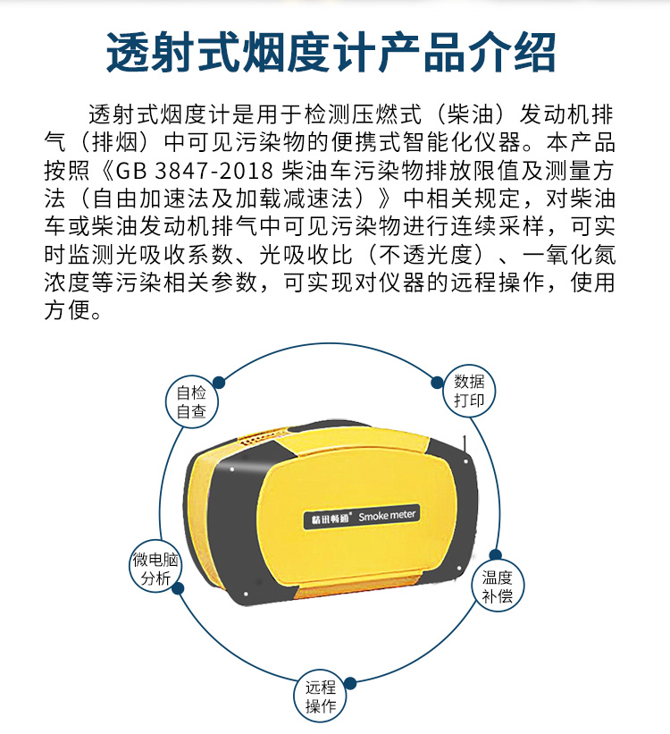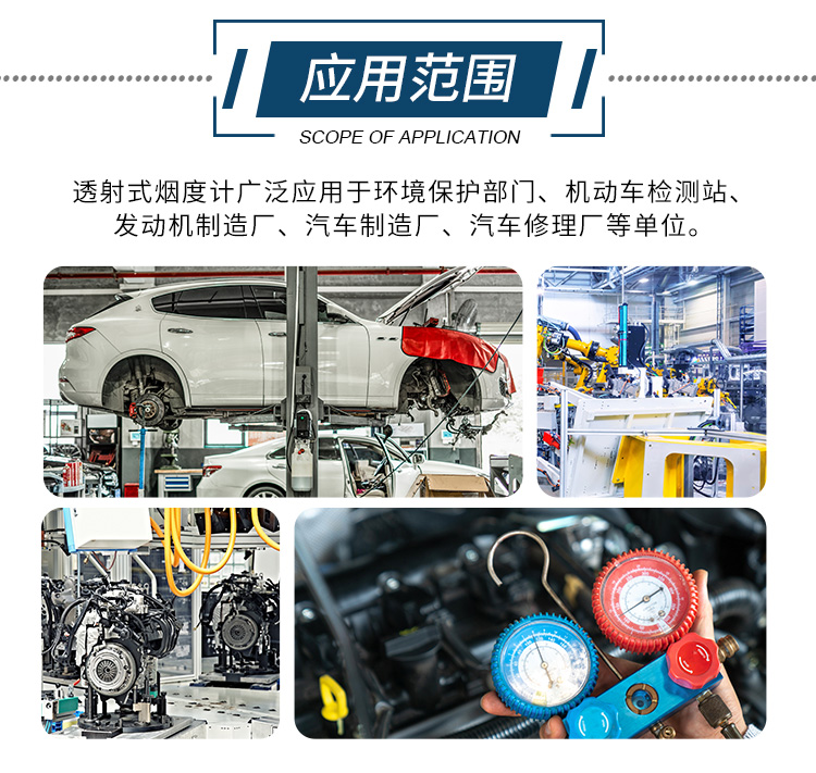 透射式煙度計可以廣泛應用于環(huán)境保護部門、機動車檢測站、發(fā)動機制造廠、汽車制造廠、汽車修理廠等單位。