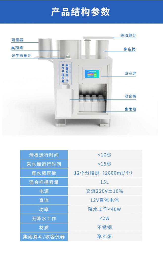 大氣干濕沉降采集系統(tǒng)是主要用來采集并監(jiān)測降水和降塵的大氣污染檢測站。大氣干濕沉降采集系統(tǒng)具有采集降水和降塵兩項功能,支持數(shù)據(jù)在線上傳至終端設(shè)備。采用不銹鋼加工制成,耐空氣、蒸汽、水等弱酸性腐蝕,安裝牢固。其滑板平移開(門)關(guān)(門)結(jié)構(gòu),能適應(yīng)露天作業(yè)的任何惡劣環(huán)境。該空氣沉降傳感器可廣泛應(yīng)用于小區(qū)、公園、農(nóng)業(yè)、科研、氣象局等領(lǐng)域。