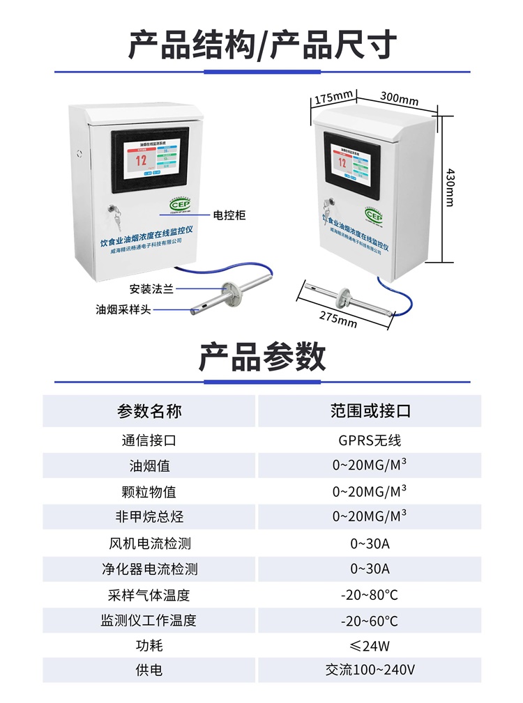 油煙在線監(jiān)測儀,能夠?qū)Σ蛷N排煙管道的油煙濃度、顆粒物濃度、非甲烷總烴(NMHC)濃度進(jìn)行24小時(shí)不間斷測量,并上傳我司免費(fèi)的監(jiān)控平臺或政府監(jiān)控平臺。為了防止商家凈化器或風(fēng)機(jī)不啟動,還可通過電流互感器采集兩路電流信號,監(jiān)控凈化器或風(fēng)機(jī)是否真實(shí)啟動。為方案安裝人員操作,整機(jī)采用7寸電容觸摸屏,全中文界面設(shè)置簡單易懂。主機(jī)帶有1路GPRS(可選4G)通信接口,可插入普通手機(jī)卡或物聯(lián)卡進(jìn)行數(shù)據(jù)上傳,有手機(jī)信號的地方就可以把數(shù)據(jù)上傳出去。