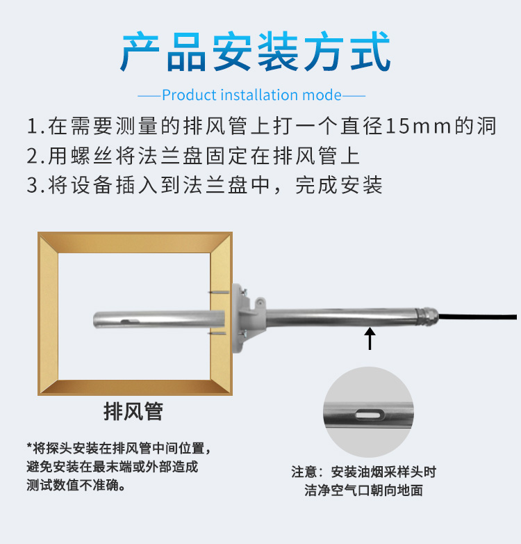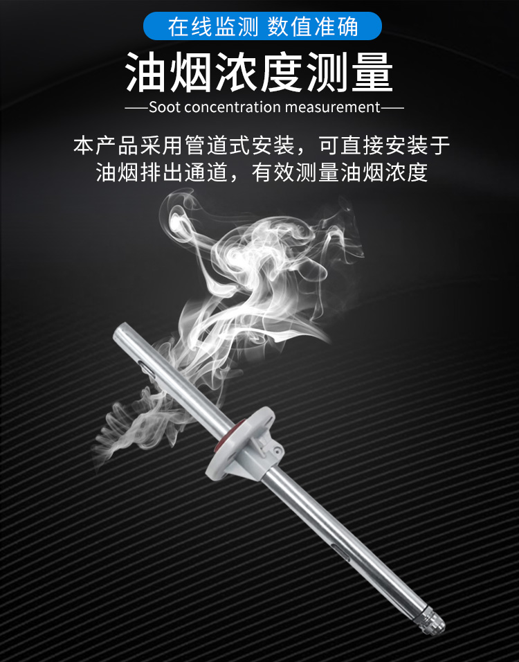1、油煙濃度測量:在線監(jiān)測數(shù)值準(zhǔn)確,油煙傳感器采用管道式安裝,可直接安裝于油煙排出通道,有效測量油煙濃度;