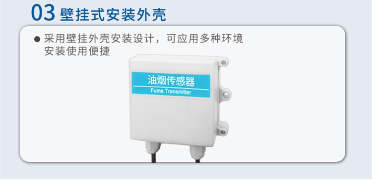 4、防濕防潮:油煙傳感器采集探頭耐溫耐濕,可長期工作于80℃油煙環(huán)境,新型結(jié)構(gòu)設(shè)計(jì),采樣位置長期免清洗免維護(hù);