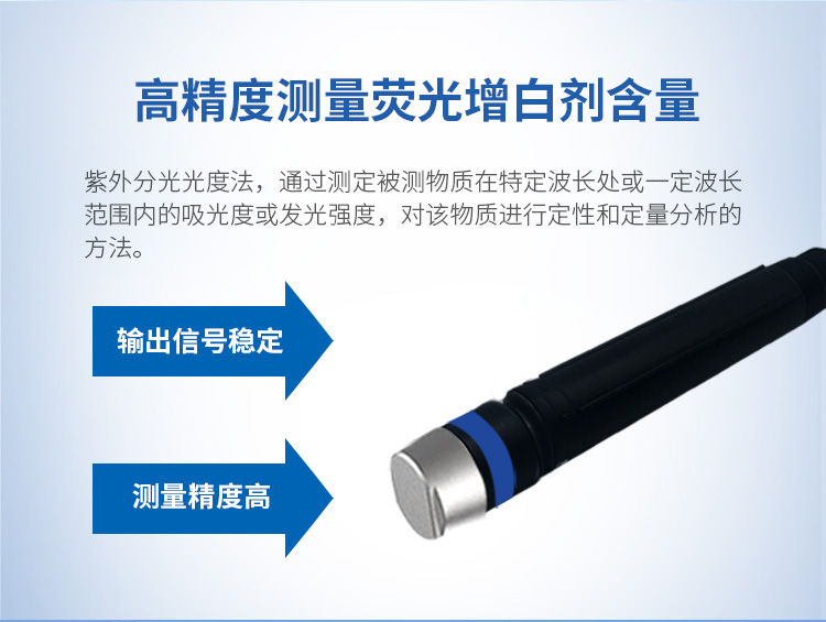 水質(zhì)熒光增白劑檢測儀使精訊暢通采用紫外分光光度法來檢測水中熒光劑含量的一款水質(zhì)分析儀。水質(zhì)熒光劑傳感器輸出信號穩(wěn)定,測量精度高,可滿足不同用戶的多種需求。產(chǎn)品線有兩種可選,一種是內(nèi)置鋼絲網(wǎng)材質(zhì),一種是普通材質(zhì),產(chǎn)品線芯采用高精度銅,外皮柔韌耐折,抗拉耐磨。廣泛應用于各種行業(yè)(工 業(yè)廢水、城市污水、生活污水及江湖流域地表水)廢水的檢測。