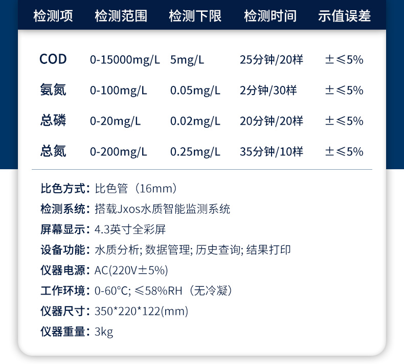 | 檢測(cè)系統(tǒng) | 搭載Jxos水質(zhì)智能監(jiān)測(cè)系統(tǒng) |
