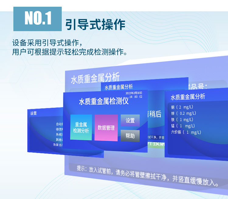 智能便攜式水質(zhì)重金屬檢測儀是精訊暢通采用進口高精度光源和光電比色法來檢測水中重金屬含量的一款水質(zhì)監(jiān)測設(shè)備。智能便攜式水質(zhì)重金屬檢測儀可檢測水中鐵、六價鉻、錳、銅、鋅等重金屬離子的含量,采用引導(dǎo)式操作,為用戶配套與預(yù)制試劑,能夠簡單完成檢測操作??蓮V泛應(yīng)用于企業(yè)污水、生活污水、地表水、科研院所、造紙印刷、冶煉鋼鐵等領(lǐng)域的水中重金屬檢測。