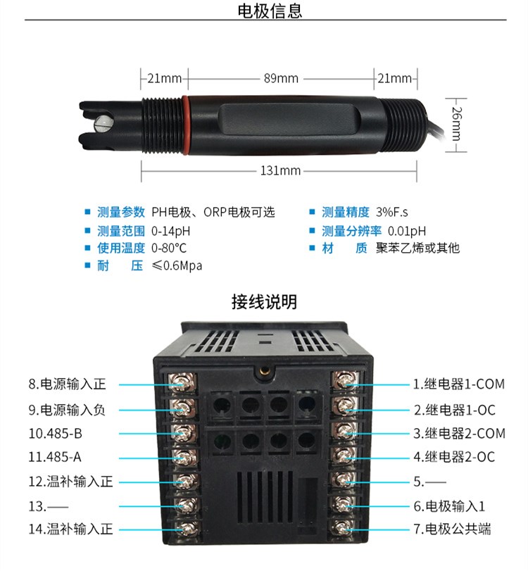 1、水質(zhì)PH傳感器采用高密度防護(hù)等級外殼,外殼牢固耐老化防塵、防腐蝕。