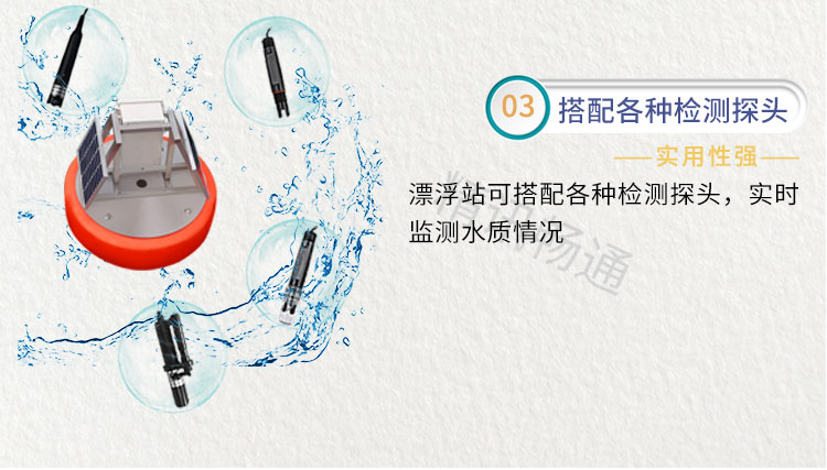 3、搭配各種檢測探頭:實用性強,浮漂式水質(zhì)監(jiān)測站可搭配各種監(jiān)測探頭,實時監(jiān)測水質(zhì)情況。